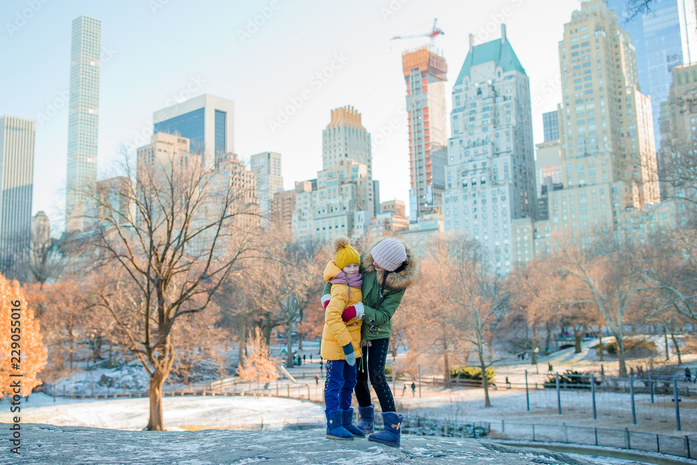 Happy mother and little girl on Manhattan, New York City, New York, USA.