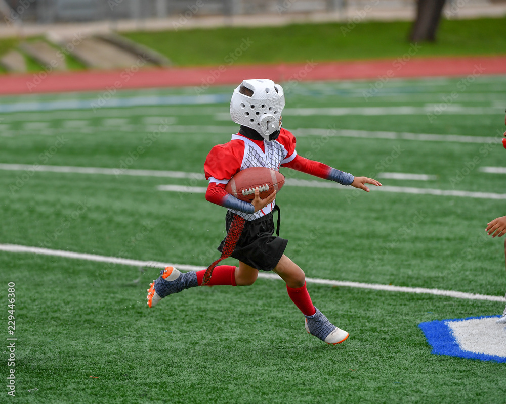 Little boys and girls playing flag football