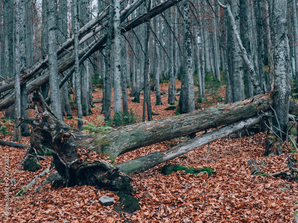 Beautiful summer forest with different trees. Scenery of nature. Autumn forest nature.