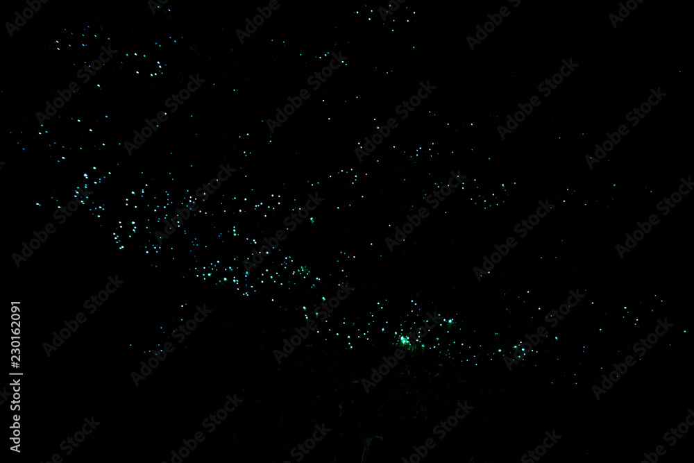 Beautiful New Zealand Glow worm in the cave. Long. exposure and high ISO photography.