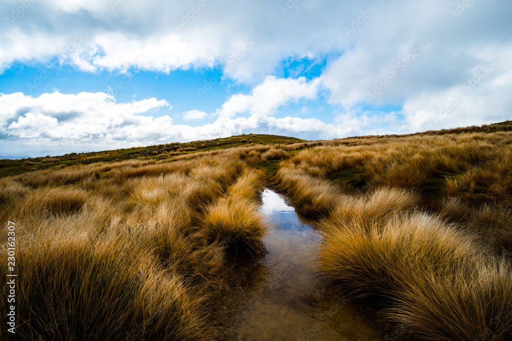 Grass mountain, Mount Robert, Nelsonlake National Park, Track, Trecking in a cloudy day.