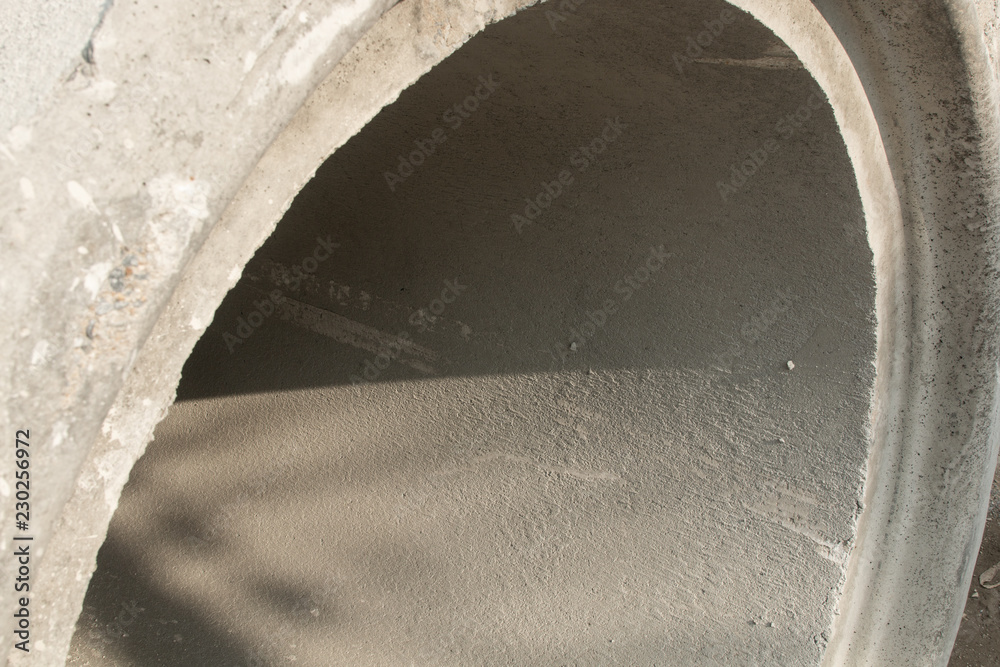 close up cement water pipe at construction site , Drainage white color with light and shadow .