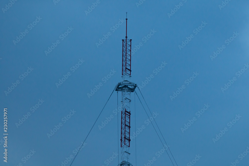 high radio tower and blue sky