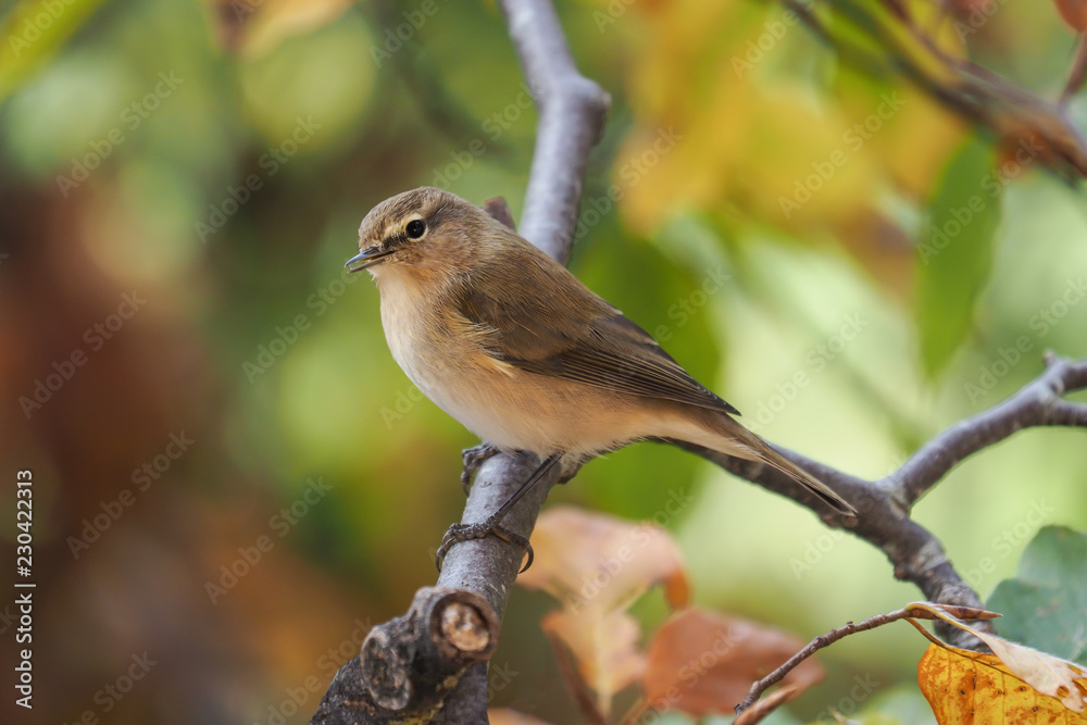 Common Chiffchaff (Phylloscopus collybita), isolated in the forest in Autumn