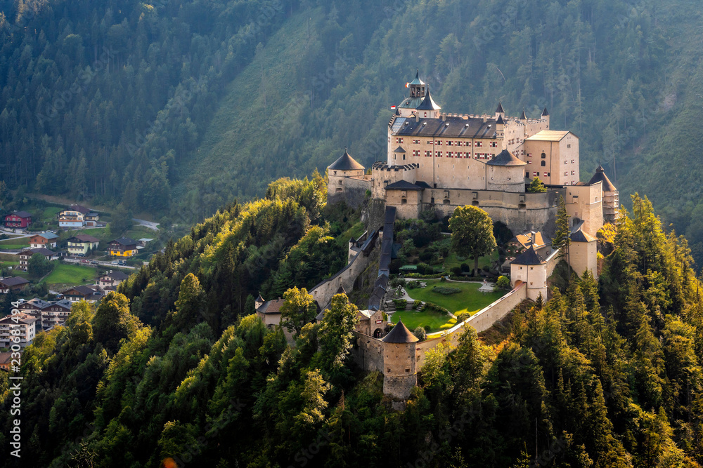 Hohenwerfen castle and fortress above the Salzach valley at Werfen on Austria