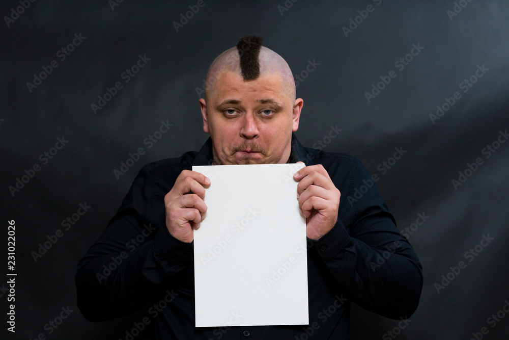 Iroquois. Looking into the lens. On the face reflected indifference. In hands is a clean white sheet. copy space