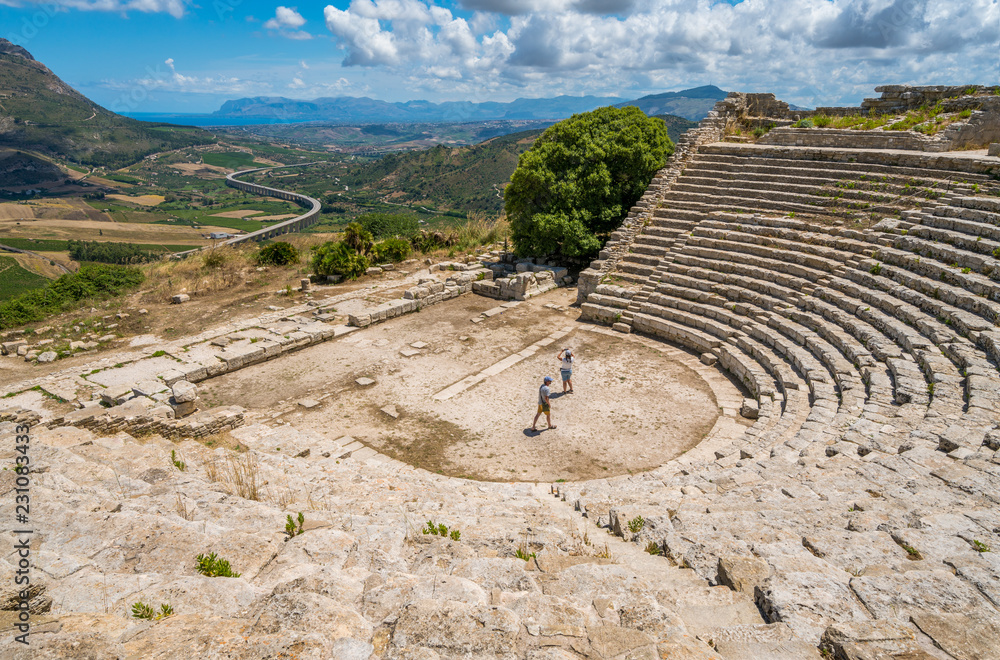 The theater in Segesta, ancient greek town in Sicily, southern Italy.