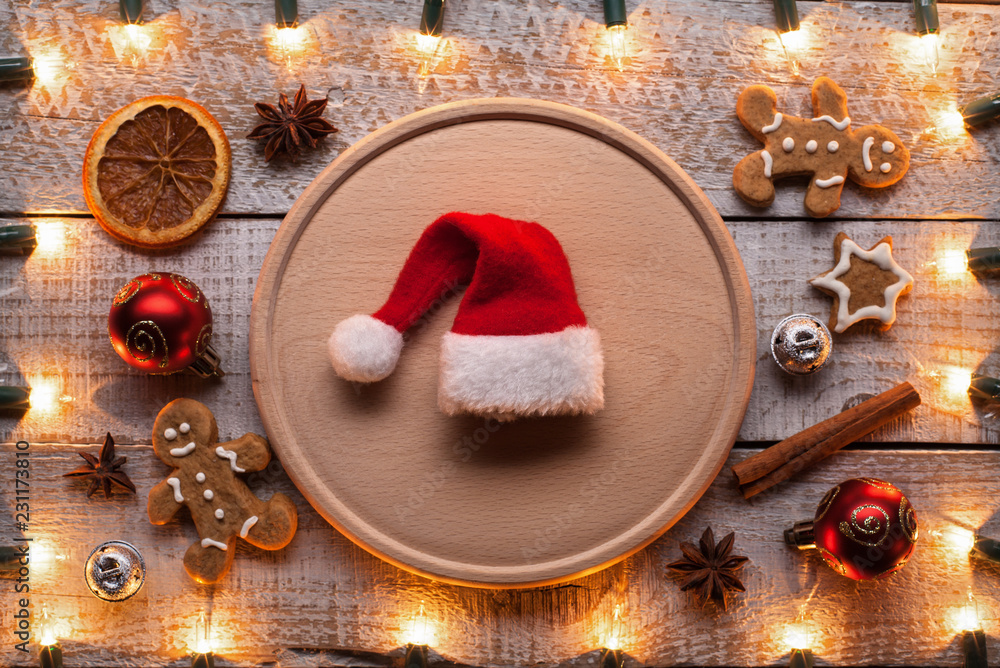 Preparing for christmas and the holiday season - with xmas decorations, cookies and ingredients on the table