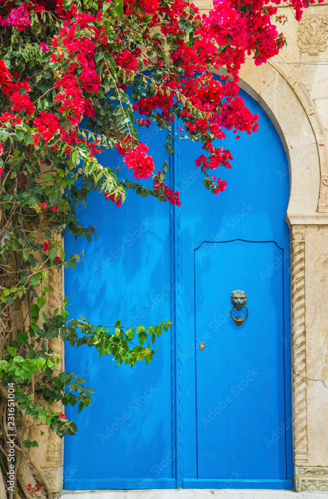 Aged Blue door in Andalusian style from Sidi Bou Said