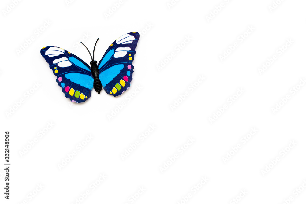 Single multicolored tropical butterfly isolated on white background