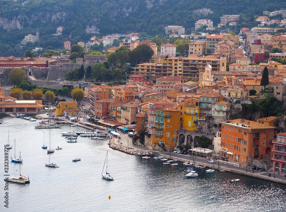 Panoramic view of French Riviera near town of Villefranche-sur-Mer, Menton, Monaco (Monte Carlo), Côte d'Azur, French Riviera, France
