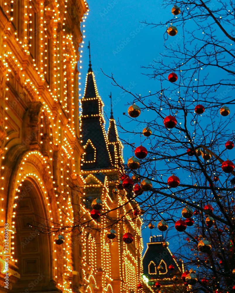 Christmas in Moscow, Russia. Red Square, GUM, New Year's decorations and illumination