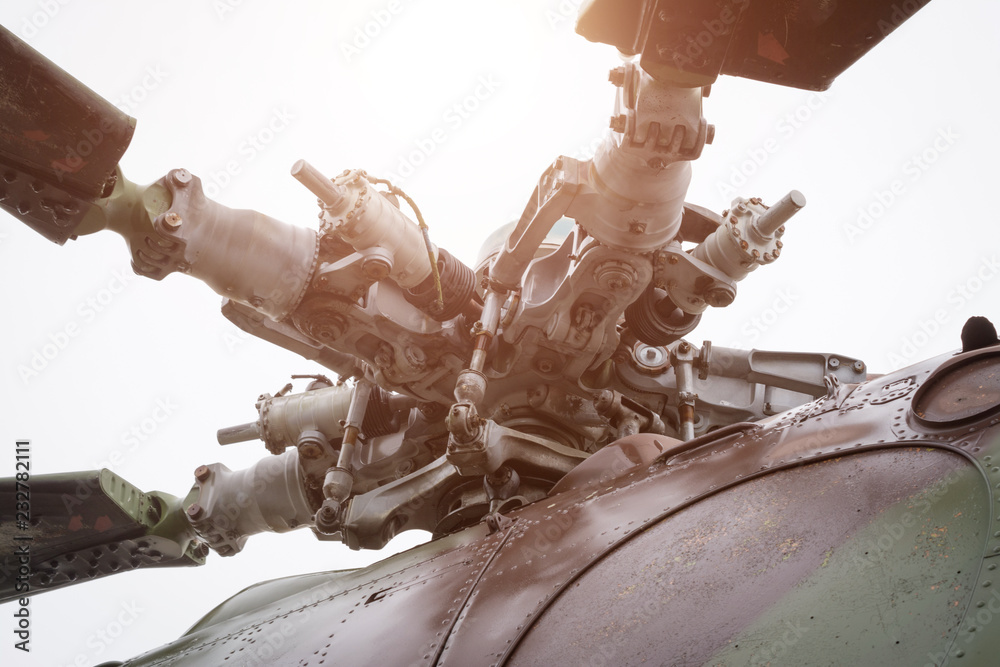 Old russian combat helicopter MI-24V, detail russian arms