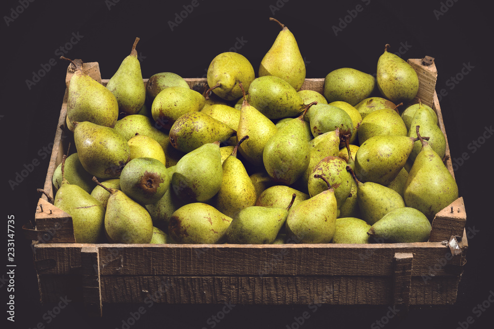 Bio Birnen in einer Holzkiste