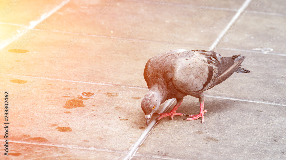 pigeons eating bread in the city street