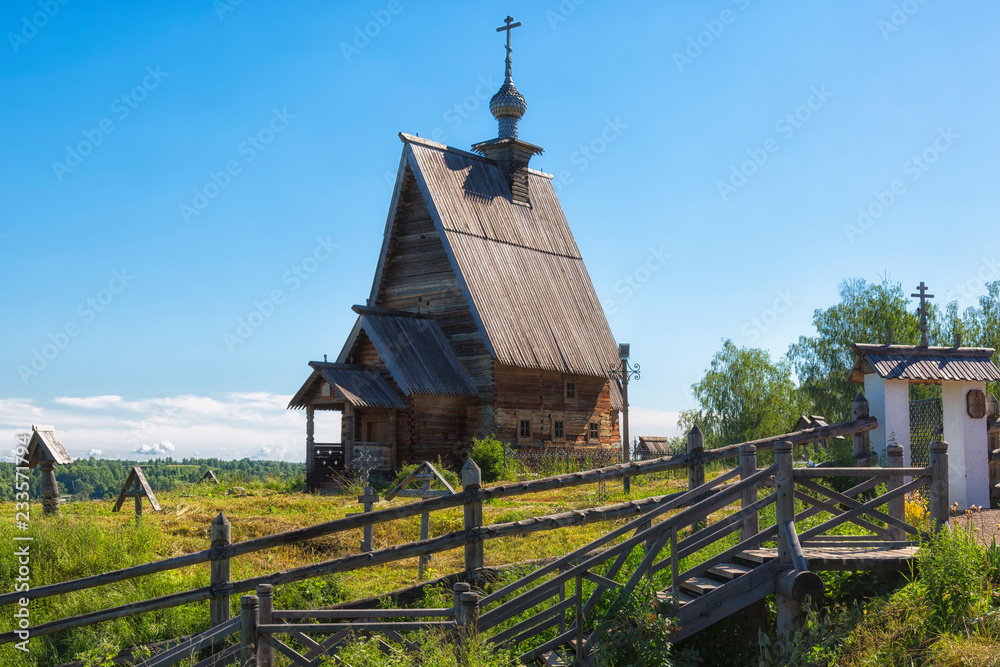 Old wooden church on the White Sea, Rabocheostrovsk, Karelia, Russia