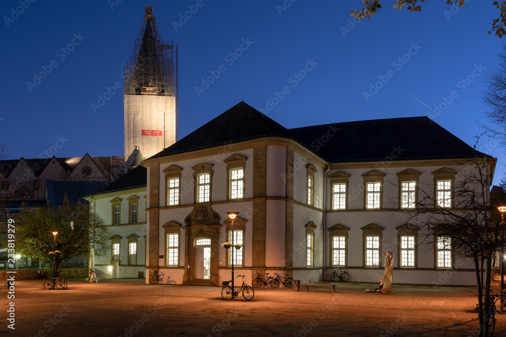 Die Stadtbibliothek und der Dom in Paderborn bei Nacht