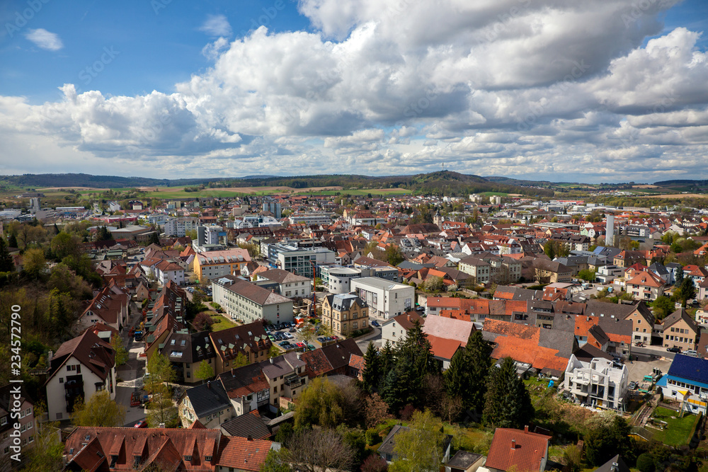 Übersichtsaufnahme Sinsheim mit Fernblick in den Kraichgau