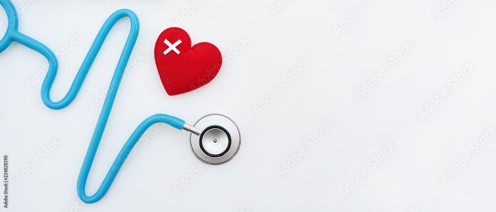 Red heart with stethoscope isolated on white background