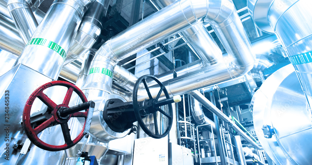 different size and shaped pipes and valves at a power plant