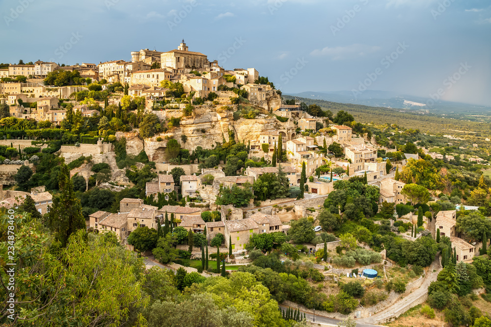 Beautiful scenic view of medieval hilltop village of Gordes in Provence, France. Holidays in France.