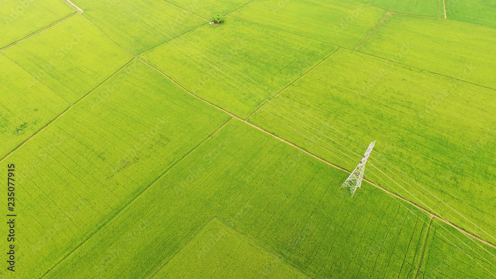 The beautiful landscape of rice fields in Thailand.