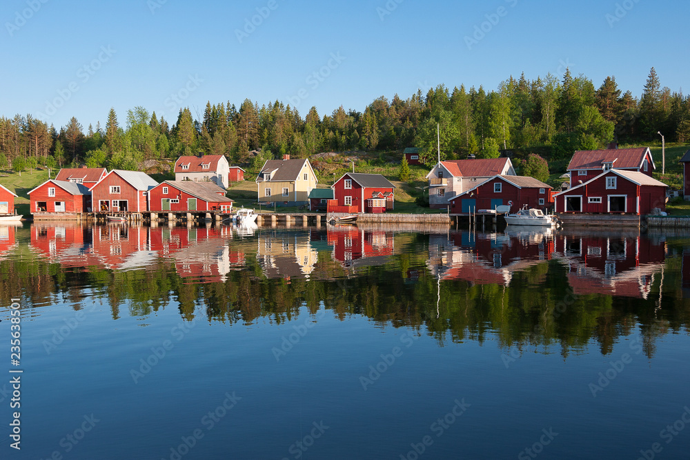 Red sweden houses in trysunda Island, Högakusten, northernn Sweden