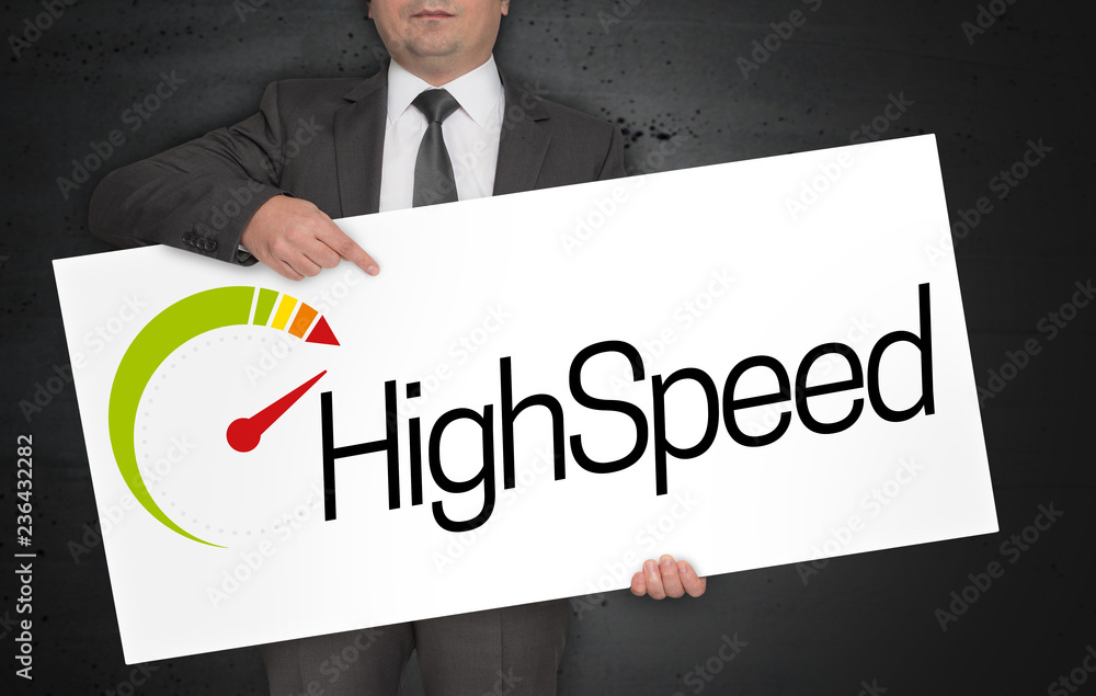 Highspeed Plakat wird von Geschäftsmann gehalten