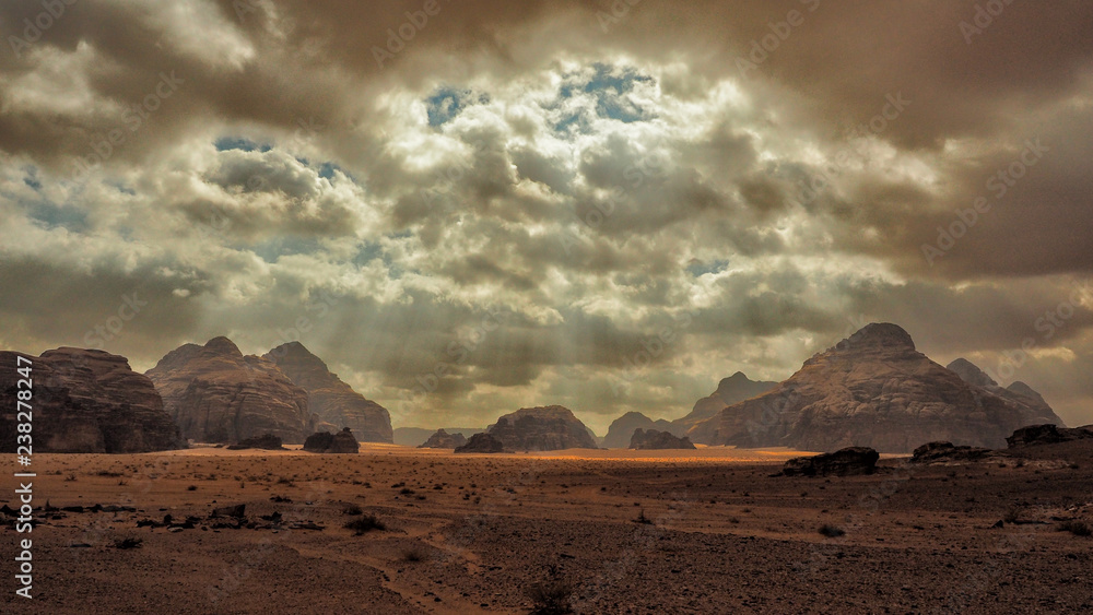 Wadi Rum, Jordan. Rocks and sand dunes. Middle East