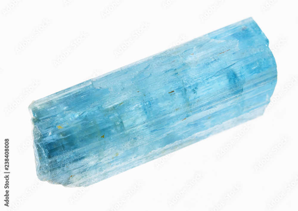 raw aquamarine (blue beryl) crystal on white