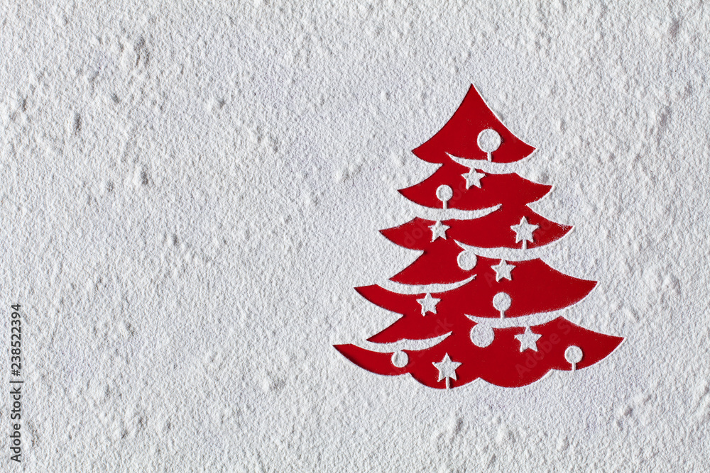 Christmas card with xmas tree drawing in flour, copy space