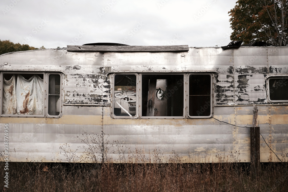 Abandoned trailer park in North Michigan USA in autumn