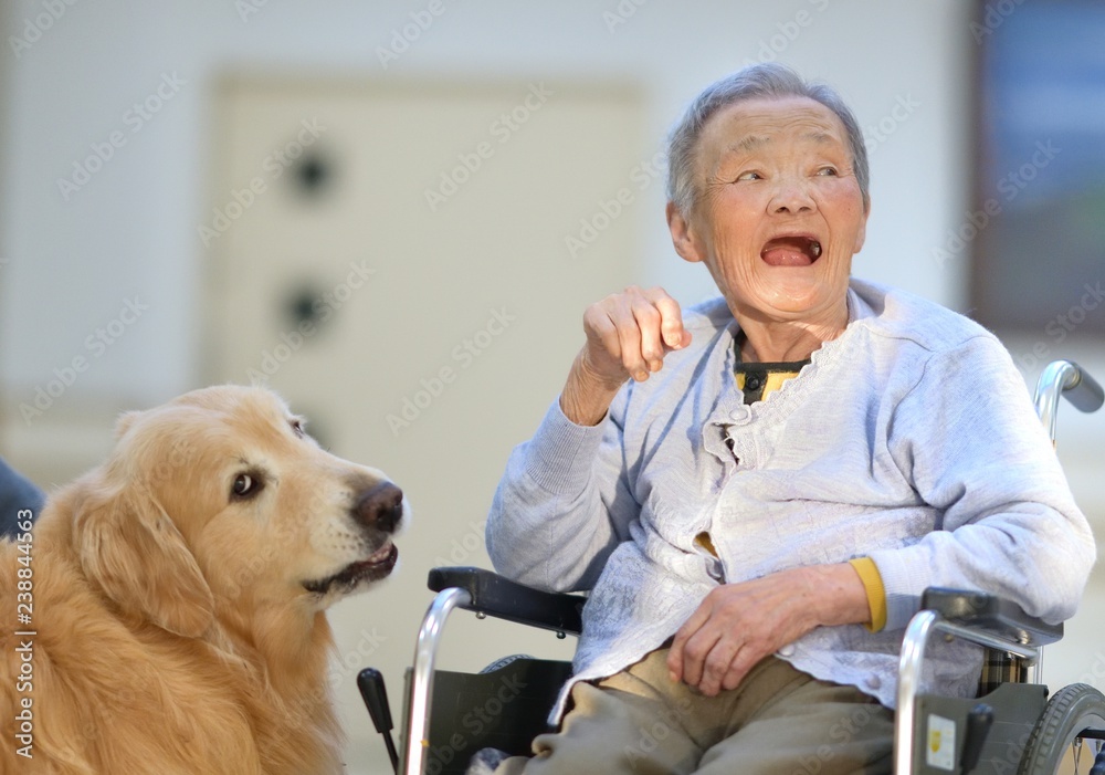 老人介護施設・母と介助犬のひととき