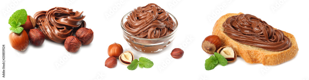 chocolate cream with hazelnut isolated on white background