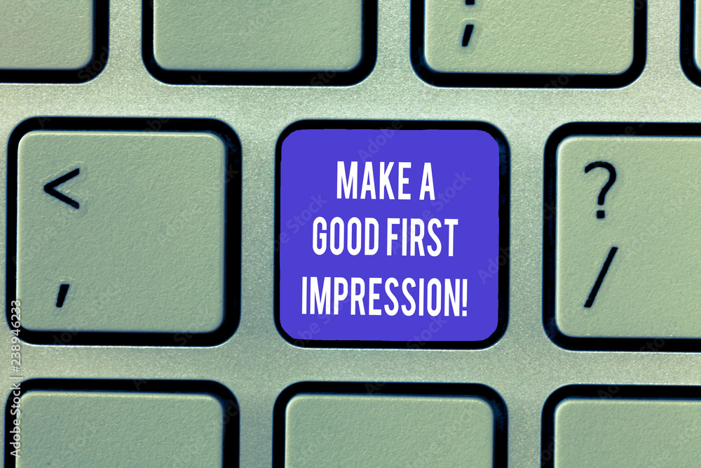 Writing note showing Make A Good First Impression. Business photo showcasing Introduce yourself in a great look and mood Keyboard Intention to create computer message keypad idea