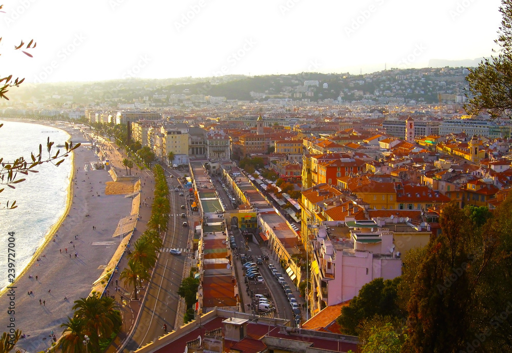 View of Nice city, Promenade des Anglais, Cote d'Azur, French riviera, Mediterranean sea, France
