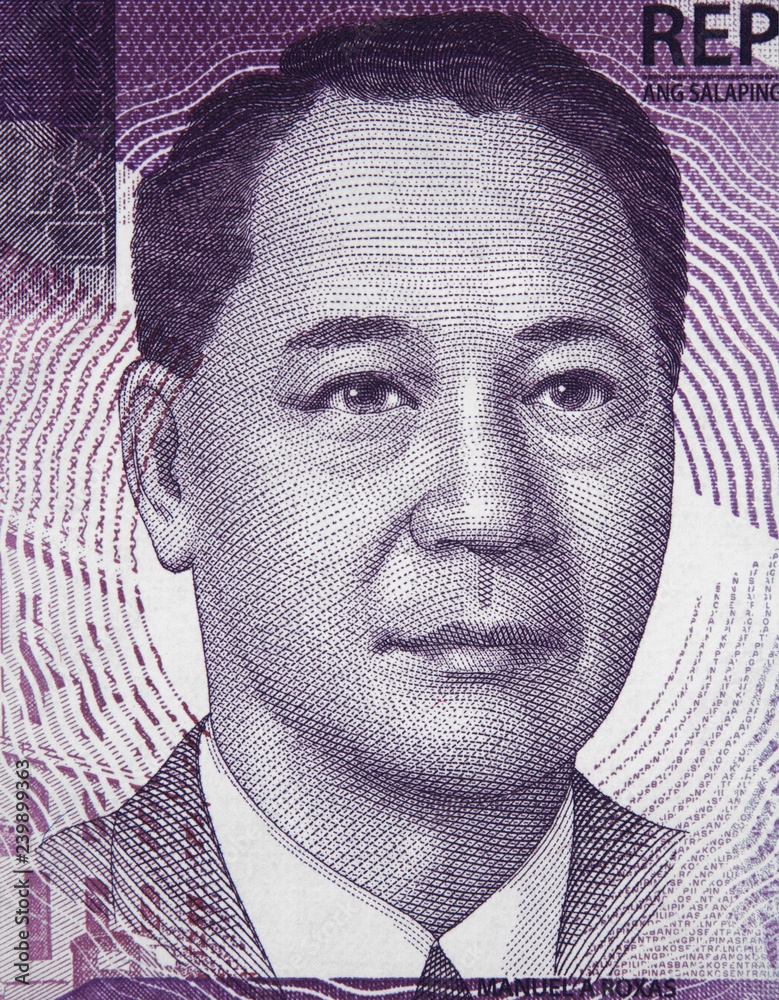 Manuel Roxas portrait on Philippine 100 peso (2015) banknote, Philippines money close up.