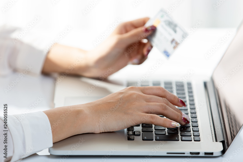 カード情報を入力する女性