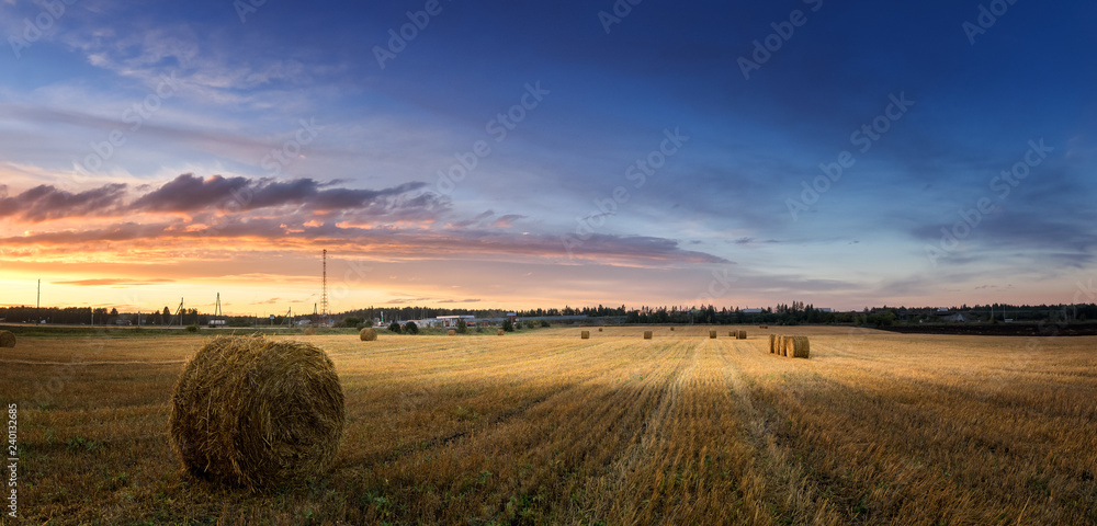 осенний пейзаж в поле с сеном вечером, Россия, Урал