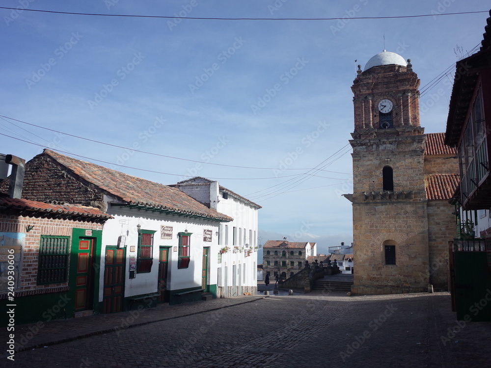 The Basilica of Mongui in the central plaza, Boyaca, Colombia