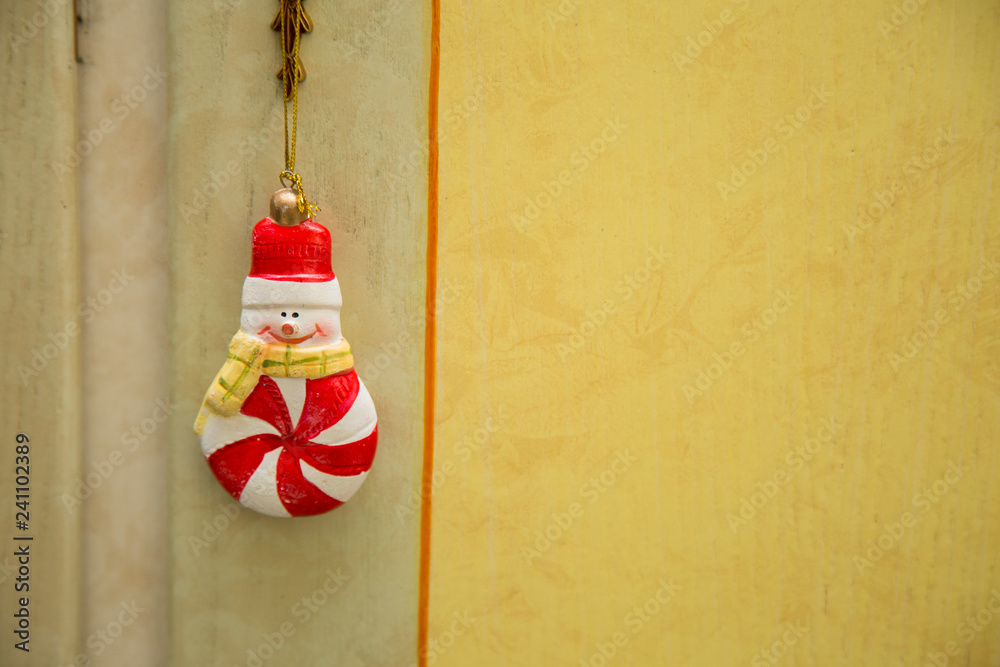 horizontal image with detail of a nice Christmas decoration hanging from a wardrobe key