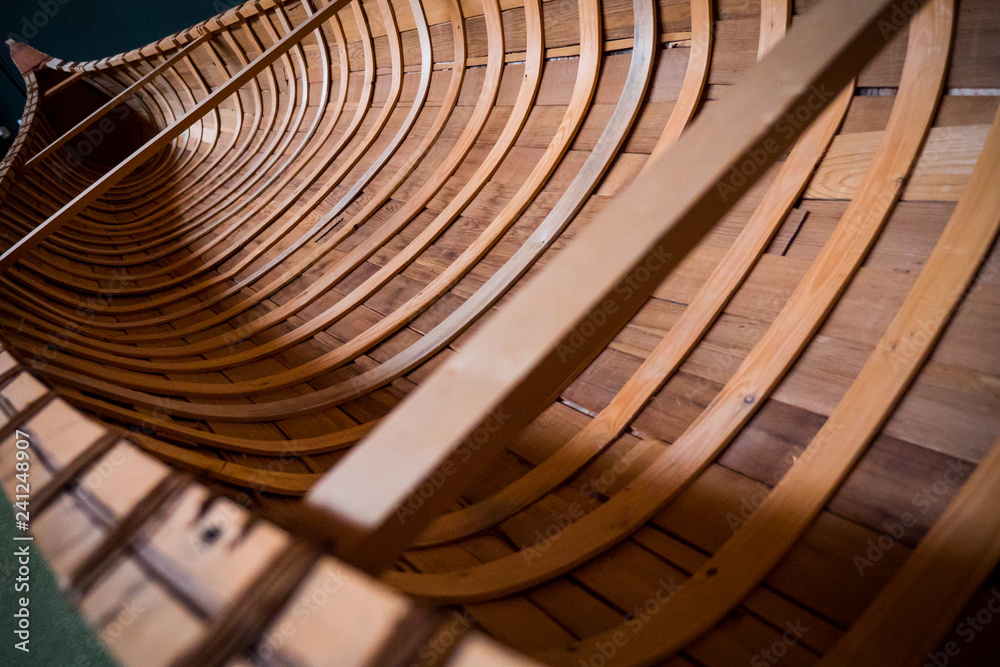 Interior of a traditional wooden Cree canoe