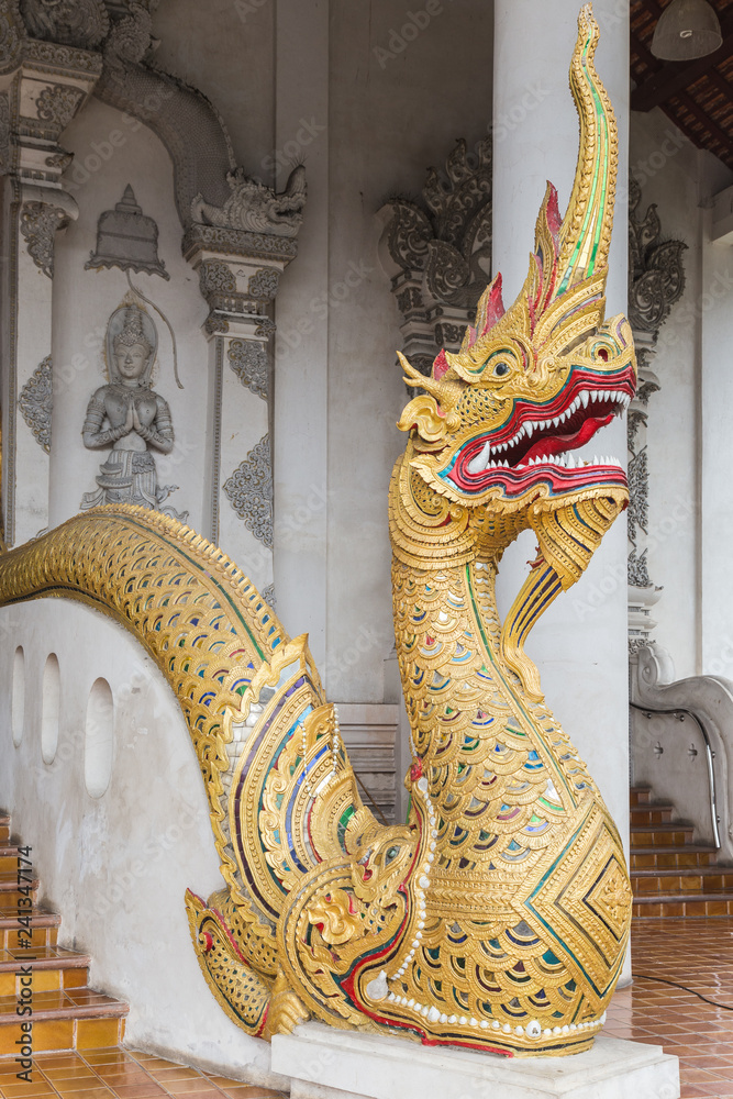 Golden dragon statue in Doi Suthep temple Chiang Mai, Thailand