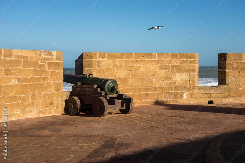 cannon on the fortified walls of the medieval village of Essaouira in Morocco