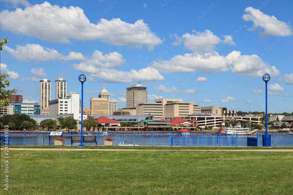Panoramic photo of Downtown Peoria photographed on the other side of the Illinois River in East Peoria, Illinois.