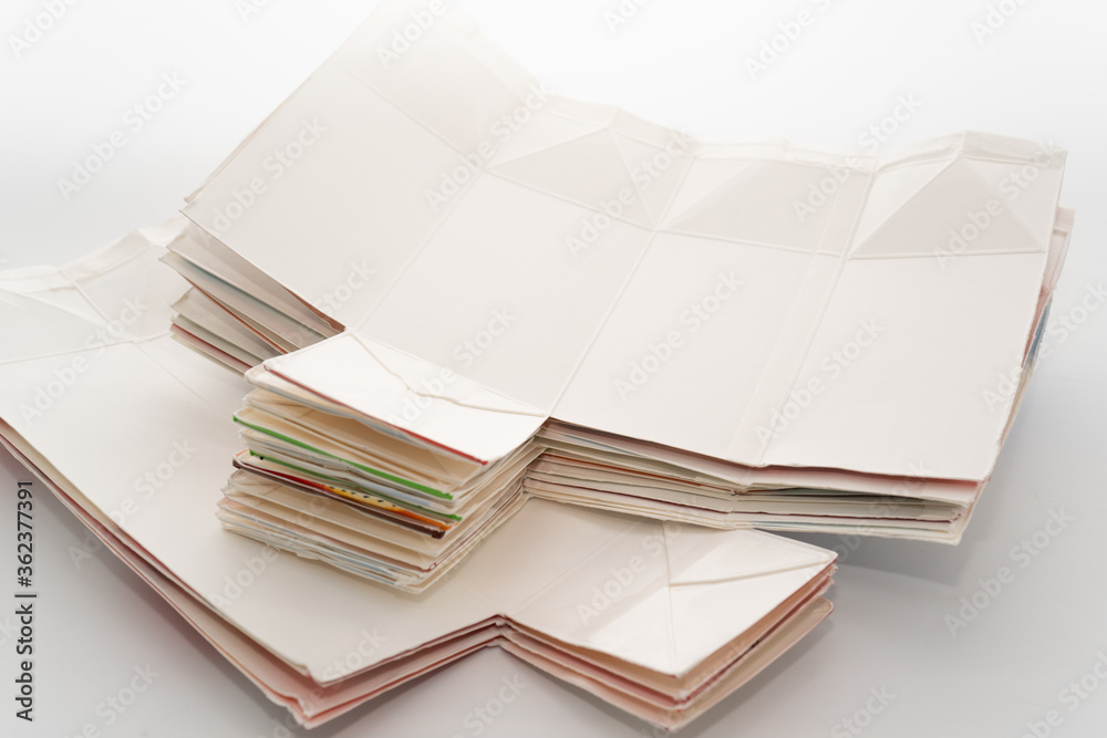 Young and cheerful woman hold yellow eclair and chocolate cake in hands. She look on camera. Isolated on grey background.