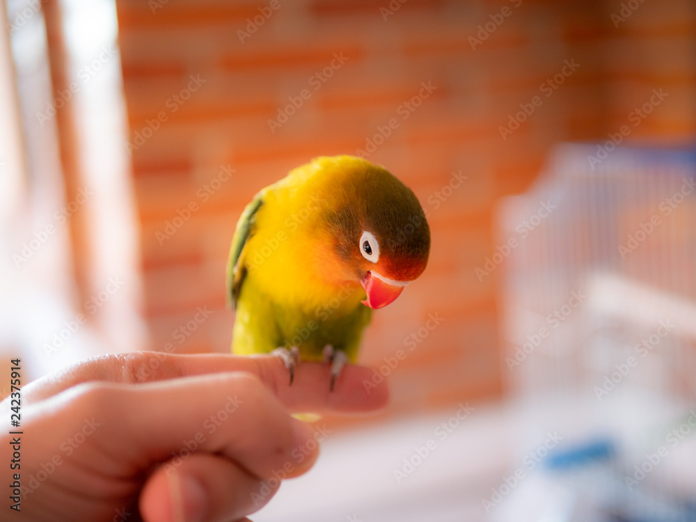 Lovebird sitting on finger