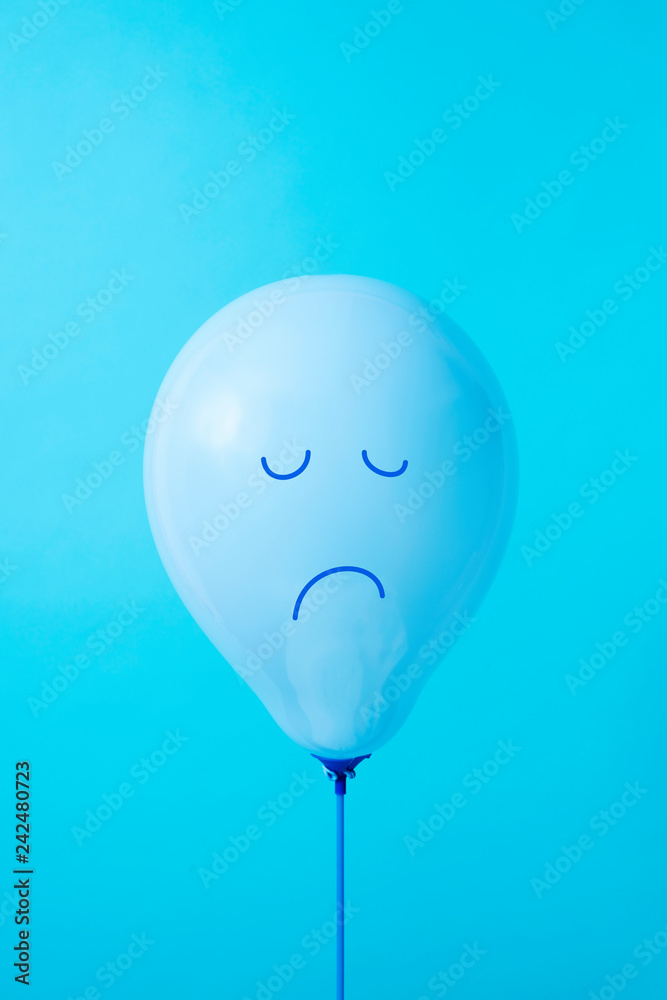 blue balloon with a sad face