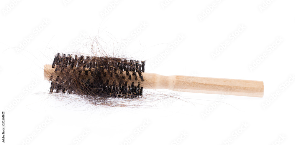 comb brush with lost hair, isolated on white background