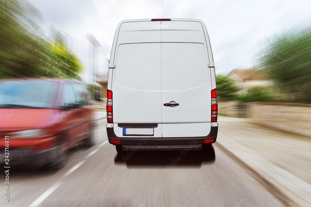 Lieferwagen fährt durch ein Wohngebiet